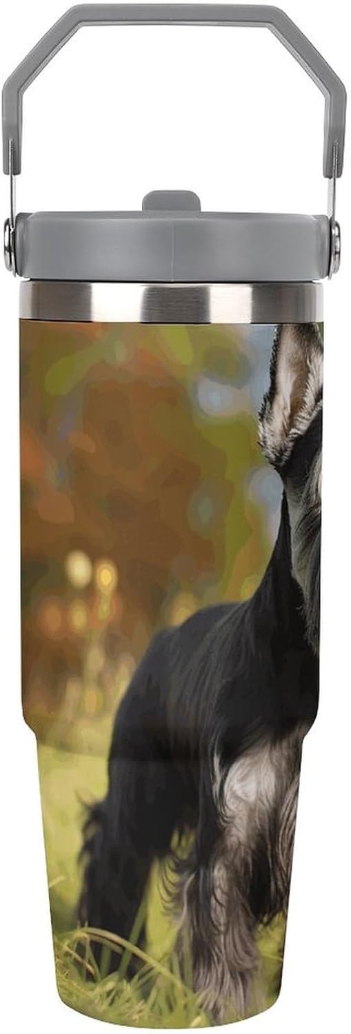 Our Schnauzer Dog on The Grass travel water bottle is made of food-grade stainless steel. The wide mouth design makes it easy to clean and add ice, and the powder-coated exterior is non-slip and durable, ensuring driving safety.Whether you prefer sipping or quenching your thirst, this personalized insulated mug has you covered. Featuring a splash-proof straw design, a sealing ring securely holds the reusable straw, and a drinking spout and full-coverage lid for enhanced leak-proof performance, this mug allows you to easily carry ice water to work, meetings, the gym, or on trips.You can give it to your friends and family as a birthday, Mother's Day, Father's Day, New Year's, Thanksgiving, and holiday gift. It's a thoughtful present.