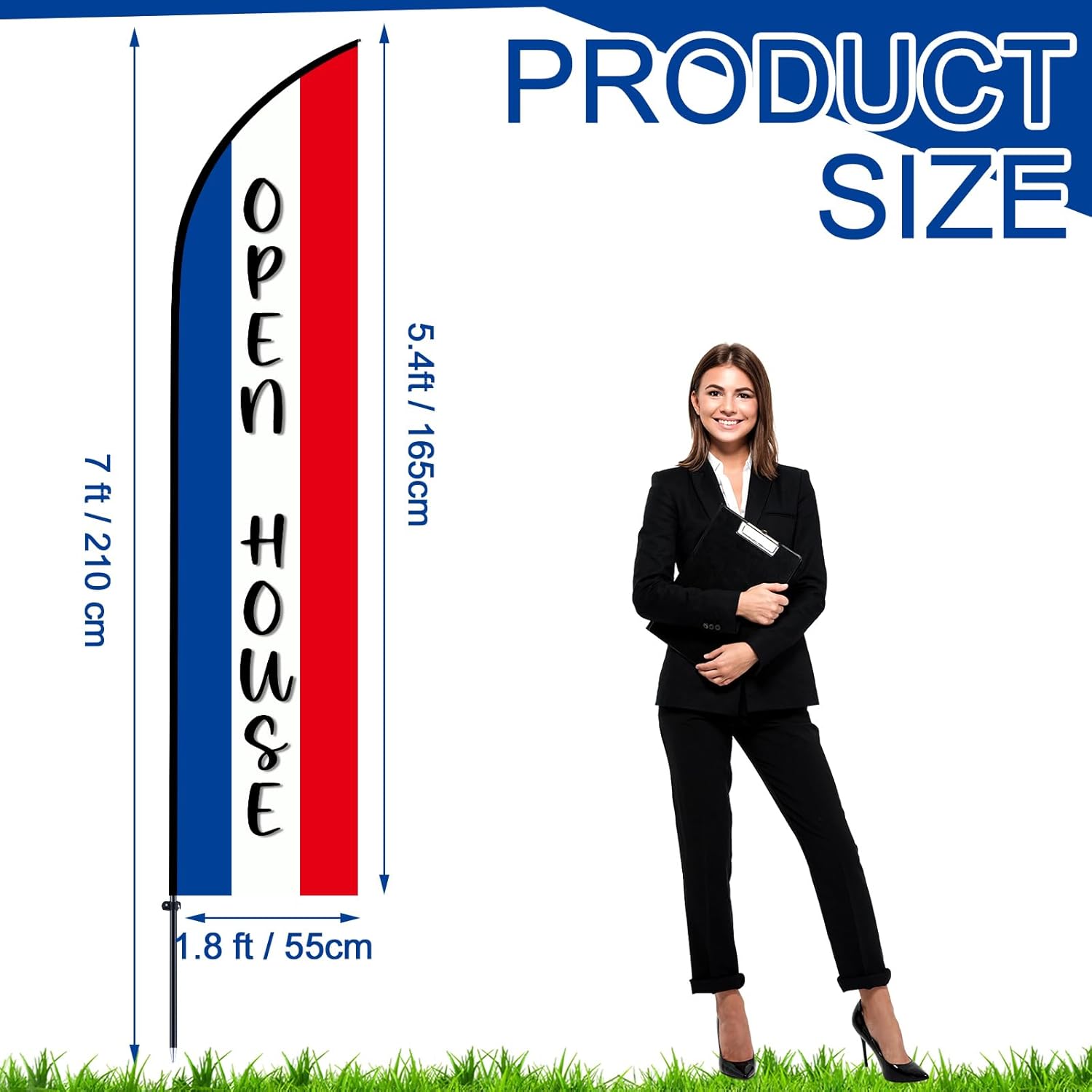 Features: One of the intriguing features of our open house banner flag is its windless design. Even under windy conditions, your flag stays still, ensuring the [Open House] message doesn't get lost in the wind's fluttering. Our flag's windless design provides a smooth, distraction free viewing for your prospective buyers. Every facet of our open flag with pole kit is tailored to meet the needs of real estate agents. Their size, style, and kit contents have been designed with the intention of making your open house stand out. They augment your marketing efforts and contribute to a successful open house viewing. Specifications: Main material: polyester fiber, aluminum and fiberglass rods Main color: red, blue, white Size: about 7 x 1.8 ft/ 210 x 55 cm tall and wide Package includes: 4 Sets open house flags Notes: Manual measurement, please allow slight errors on size. The color may exist a slight difference due to different screen displays.