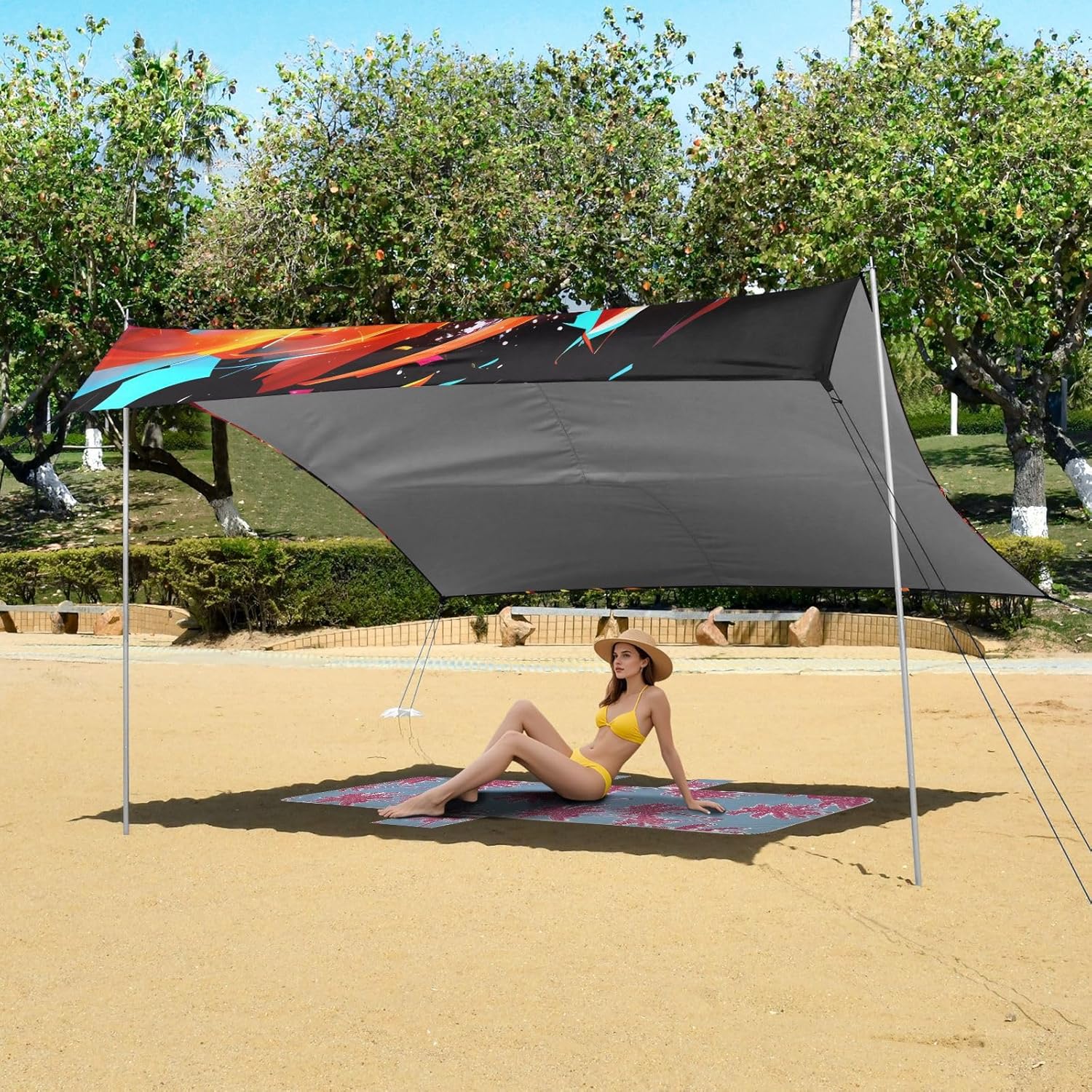 This beach tent is made of silver-coated oxford cloth, which can provide effective insulation protection and reduce sunburn or glare. This beach shade includes a canopy, 4 wind ropes, 4 claw nails, 4 sandbags and 1 sand shovel. In addition, our beach tent comes with a travel bag for easy storage and carrying. During the installation process, in addition to using 4 refillable sandbags and metal poles for fixing, each beach shade can add additional wind ropes on the reinforcement poles to make the beach tent more windproof and more stable, so that you don¡¯t have to worry about the beach tent blowing away when you are playing. The beach tent sun shelter is suitable for the beach, and is also suitable for various outdoor scenes such as fishing, park outings, camping, etc. You can set up the beach shade anywhere and enjoy a relaxing and pleasant time. It is very suitable for couples, friends, and family to spend a good time together.