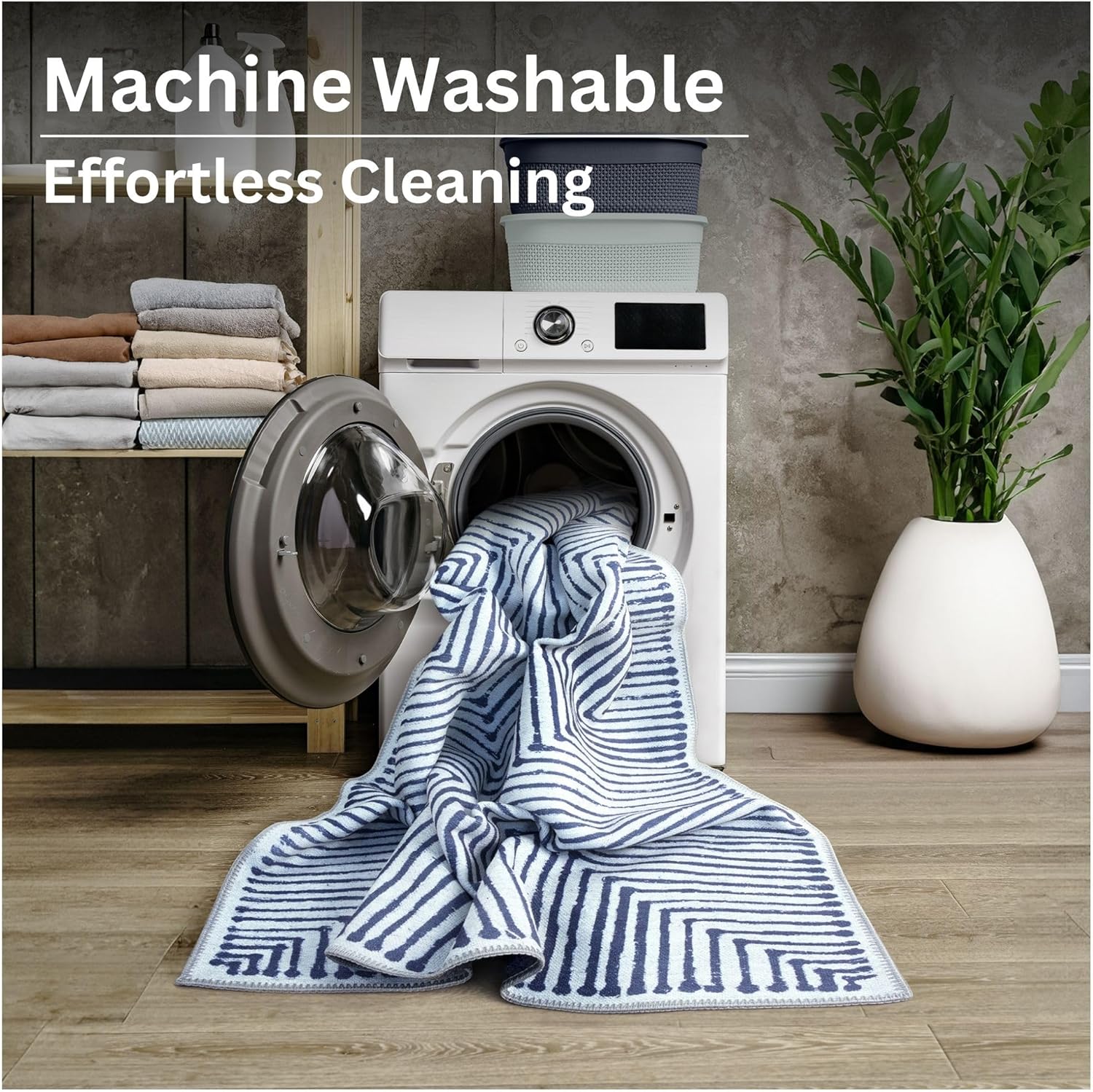 Elevate the style of your home with this beautiful, stylish, and durable blue runner. This soft machine washable non-slip Modern runner is pet & kid friendly, durable, and non-shedding, making it great for high-traffic areas including your entryways and hallways. Trendsetting Stripes runner provides you comfort and a beautiful soft feel that you will enjoy. This elegant runner complements any space and blends nicely with any furniture and wall art. Crafted in Turkey by talented artisans using high quality materials. Easy to clean and maintain: machine wash on delicate cycle (do not use bleach) at 85°F (30°C) and line dry or dry on air-only cycle without heat. Vacuum regularly and spot clean small stains. Stain resistant low pile premium fibers make this soft and cozy runner great for any space. It protects your floors from furniture scratches and other potential damages. This beautiful runner with fade resistant fibers will look gorgeous even after many years of use and will remain a highlight of your home decor.