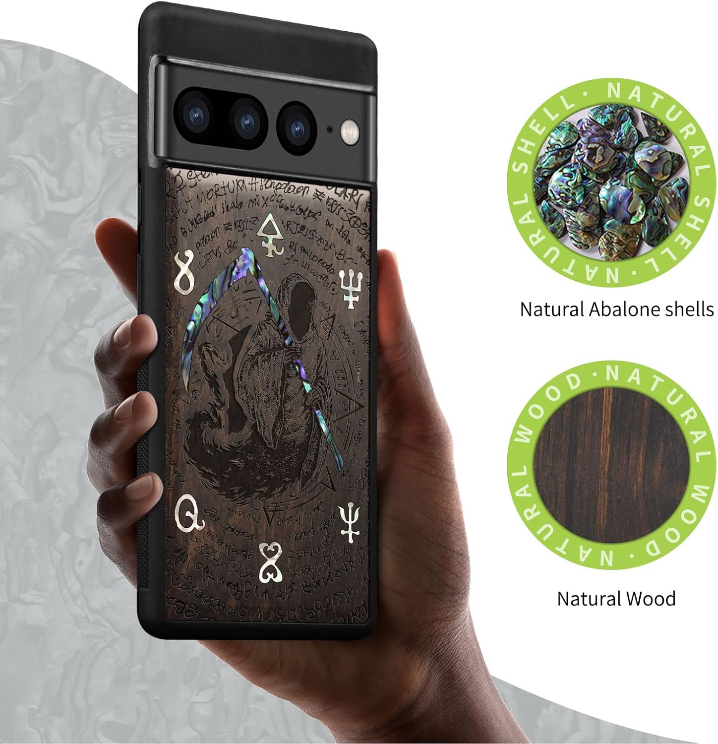 | Additional Features | The unique solid wood keeps the palm dry and prevents fingerprints from sticking to the surface of the case, keeping it clean and elegant., Vibrant design: It brings nature to life without adding too much complexity., wood micro-engraving, and shell inlay technology. |