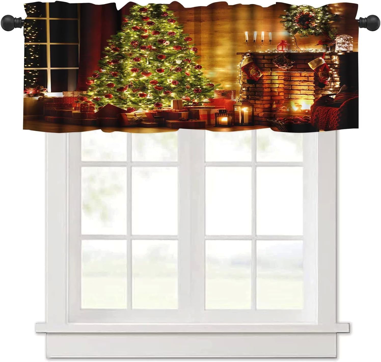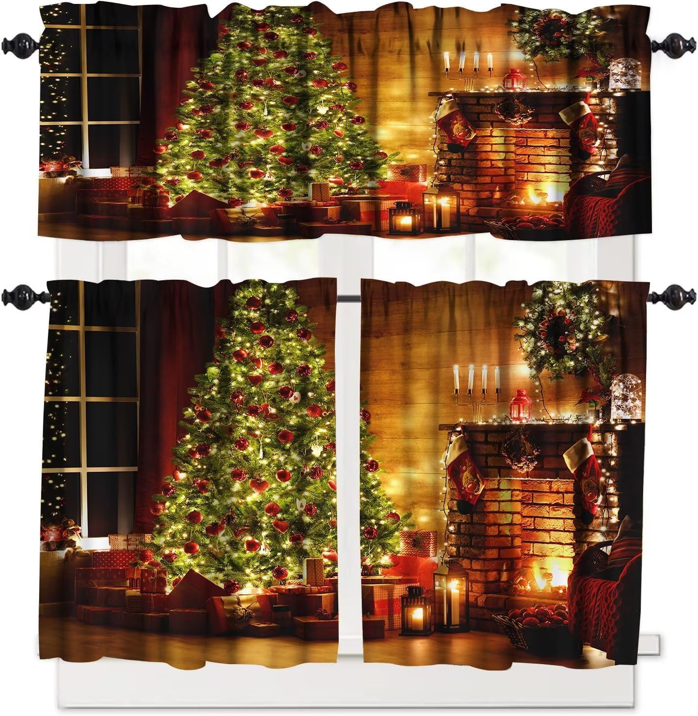 Frequently Questions Asked:What's the size of the tier and valance set?Package Including: 1 pcs Curtain valance measures 54 W x 18 L Inches. 2 pcs tier curtains, eaches curtain panel measures 27 W x 24 L Inches(Total 54 W x 24 L)/ each curtain panel measures 27 W x 36 L Inches(Total 54 W x 36 L). 3 pieces in one package.Are the curtains valance & tier total blackout?No, they are not total blackouts, but they can block most unwanted sunlight, and protect your privacy and your furniture.Main InformationPremium Material- High quality durable polyester fabric.- Cozy, comfortable, smooth.- Long lasting and no easy to tear.Exquisite Workmanship and Header Type- The valance and tier curtain set is given to stitching ensuring there is no loose threads and uneven hems/edges.- The curtain set of valance and tier rod pocket measures 3 inch fits 1.5" straight rods in the market that slides easily onto your curtain for quick installation. There is 1" header on the top of each valance and tier kitchen curtain, which can create an elegant atmosphere, give a vitalitive touch and add beauty to your half windows with a new look.Various Occasion DecorAn instant update to your window look, this 3-piece kitchen tier is otherworldly and matches any of your custom home styles, perfect for traditional, contemporary, glamour, shabby chic or farmhouse home decor. Perfect for kitchen, infant room, basement, bedroom, bathroom, living room, laundry room, studio and other windows. Of course, they are not just tier curtains for windows, they can also be used on closet, shelf or any places you want to put on for privacy protection.