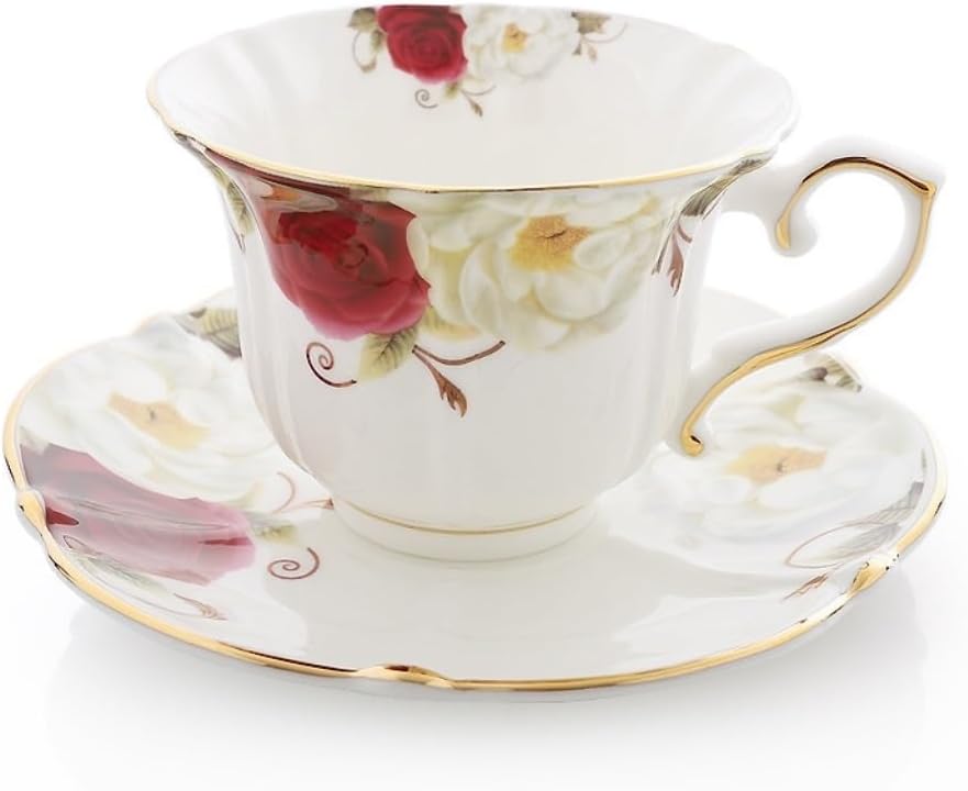 Fits in most cup holders, the coffee mug has a handle and is beautifully designed for easy portability, making it an ideal mug to use if you need it.Product name: coffee cup and saucer set/flower tea cup and saucer setApplicable places: office, homeCapacity: 220mlWeight: 300gSize: dish 14.8cm/cup 4.5*6.8*10cmStyle type: light luxury retroApplicable people: GeneralMaterial: CeramicApplicable places: office, home, bar, restaurant, outdoor, leisure bar, coffee shop, tea houseThe style and color are subject to the actual productOptimum size for maximum comfort, use the coffee mug to enjoy leisurely mornings on the terrace, perfect for cozy moments. Whether bringing comfort at home, in the office, or on weekend trips outdoors, this coffee mug delivers, making it a thoughtful and practical gift.