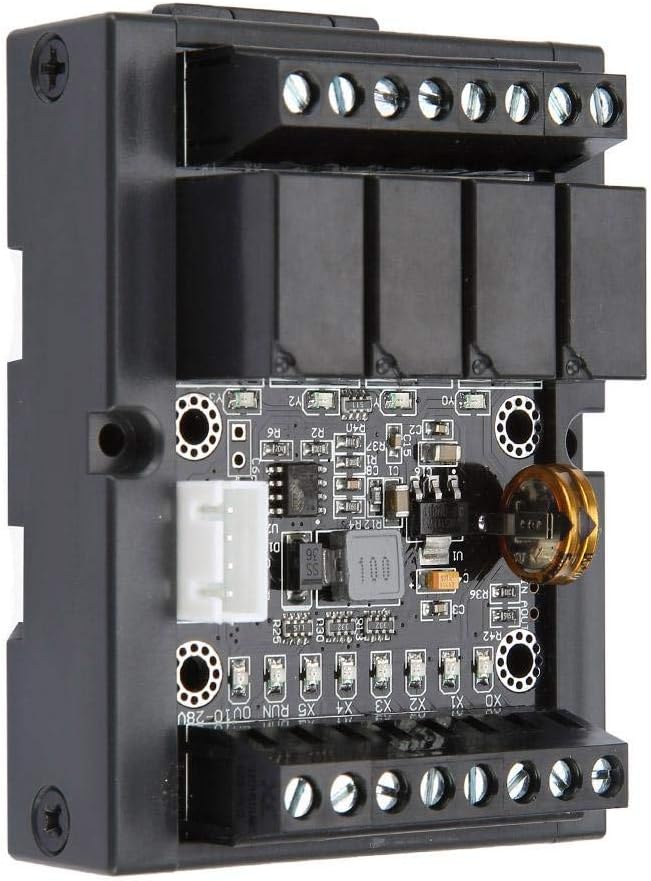 PLC Industrial Control Board FX1N-10MR Programmable Relay Delay Module With ShellFeatures:1. 100% brand new and high quality.2. Small body and stable performance.3. This module is programmable and can realize thousands of functions.4. Work performance is stable and reliable.5. Built-in timing circuit can effectively ensure long-term operation of the module.Specifications:Condition: 100% Brand NewModel: FX1N-10MRPower Supply: 10-28VDCWeight: Approx. 92g / 3.2ozFunction:1. Turn on the power, the relay 1 is closed after N seconds of closing. then the relay 2 is closed after N seconds of closing.2. Turn on the power, the relay 1 is turned off after N seconds of closing. then the relay 2 is turned off after N seconds, and then cycles.3. When the power is turned on, the relays 1 and 2 are not activated. When there is a signal or a button is triggered, the relay 1 is turned off after N seconds is closed. then the relay 2 is turned off after N seconds and then turned off until the next trigger, repeating the same action. By programming the signals 1, 2, any control of the relays 1 and 2 can be achieved.4. When signal 1 has a signal, relay 1 is closed and relay 2 is turned off. When signal 2 has a signal, relay 1 is turned off and relay 2 is closed.5. Only the NPN sensor signal can be connected, and the sensor signal can be programmed to realize any control of the relay.6. When signal 1 has a trigger, control relay 1. when signal 2 has a trigger, control relay 2.7. Turn on the power, control the motor to rotate for N seconds, then reverse N seconds, and cycle.8. When the signal 1 has a signal, the motor is controlled to rotate forward. when the signal 2 has a signal, the motor is reversed.Package List:1 * Relay ModuleAbout shipping4. The images shown are not the actual item and are for your reference only.5. SERVICE T