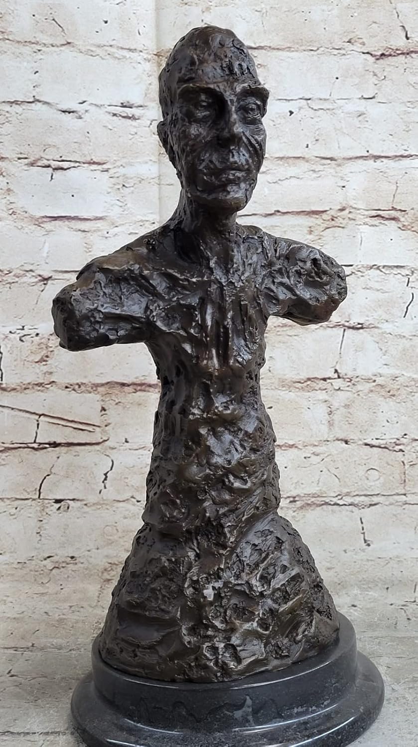 Giacometti's brother Diego was one of his most frequent models, appearing in drawings, paintings, and sculptures throughout Alberto's career. A particularly prolific and searching series of portrait busts dates from the early 1950s, as Giacometti worked diligently to capture the essence of Diego's character and appearance with a ""realism"" that he felt constantly eluded him. During this period he often painted his plasters and bronzes as a means of approaching more closely his fleeting perceptions. The three bronze portrait busts of Diego in the Nasher collection are extensively and beautifully painted in muted gray and gray-green tones. The distinctive variations in the portraits underline how differently Giacometti saw his brother on various occasions, and illustrate the artist's frequent statements about the limitations of sight. This sculpture was cast using the €œLost Wax Method€ and has a two toned brown patina and is signed Condition: This sculpture is in perfect condition.Bronze Dimensions with Marble Base: Height 15"" x Width 7""Marble Dimensions: Diameter 7"".Height without base: 14""Weight : 12 LBSInventory:59DS4924395