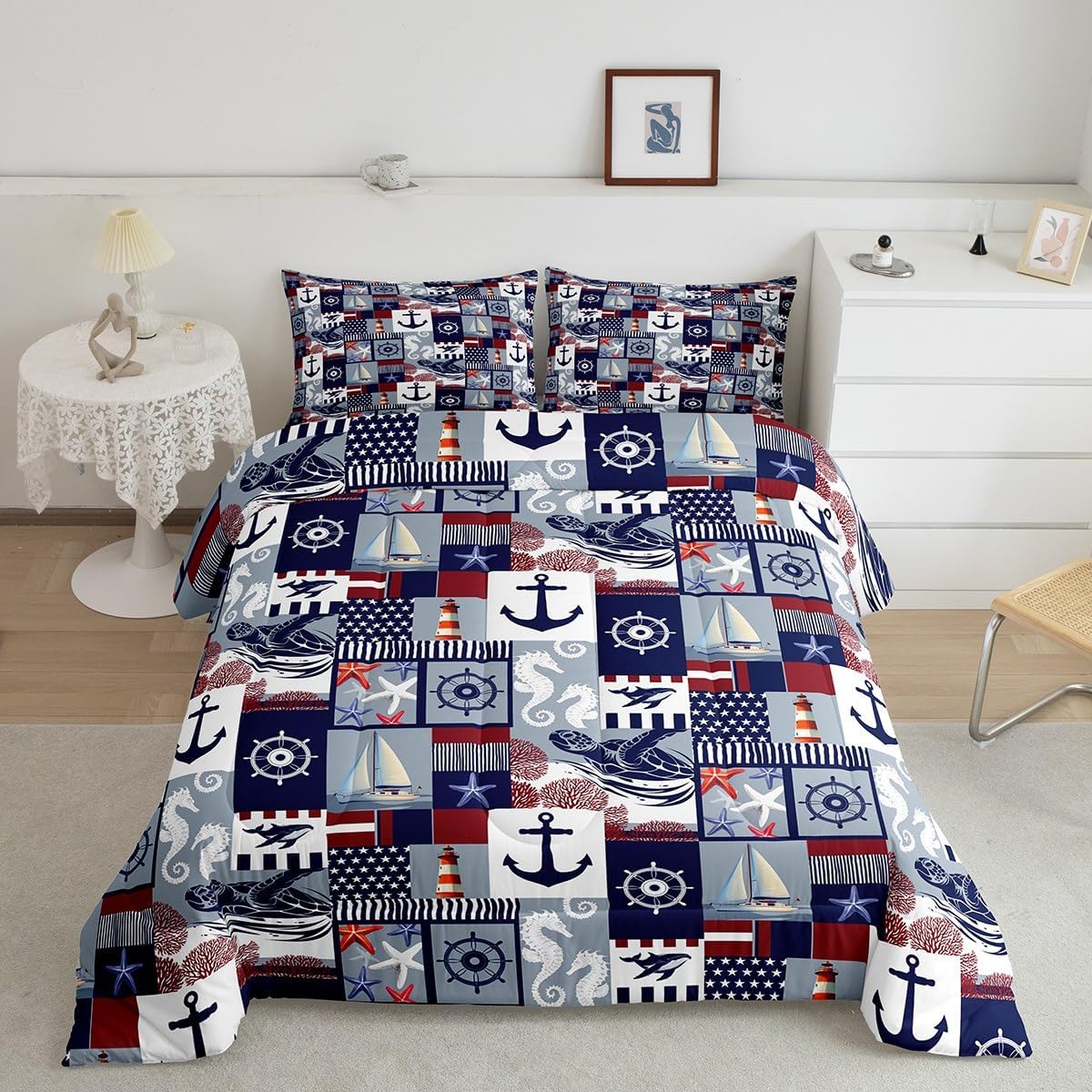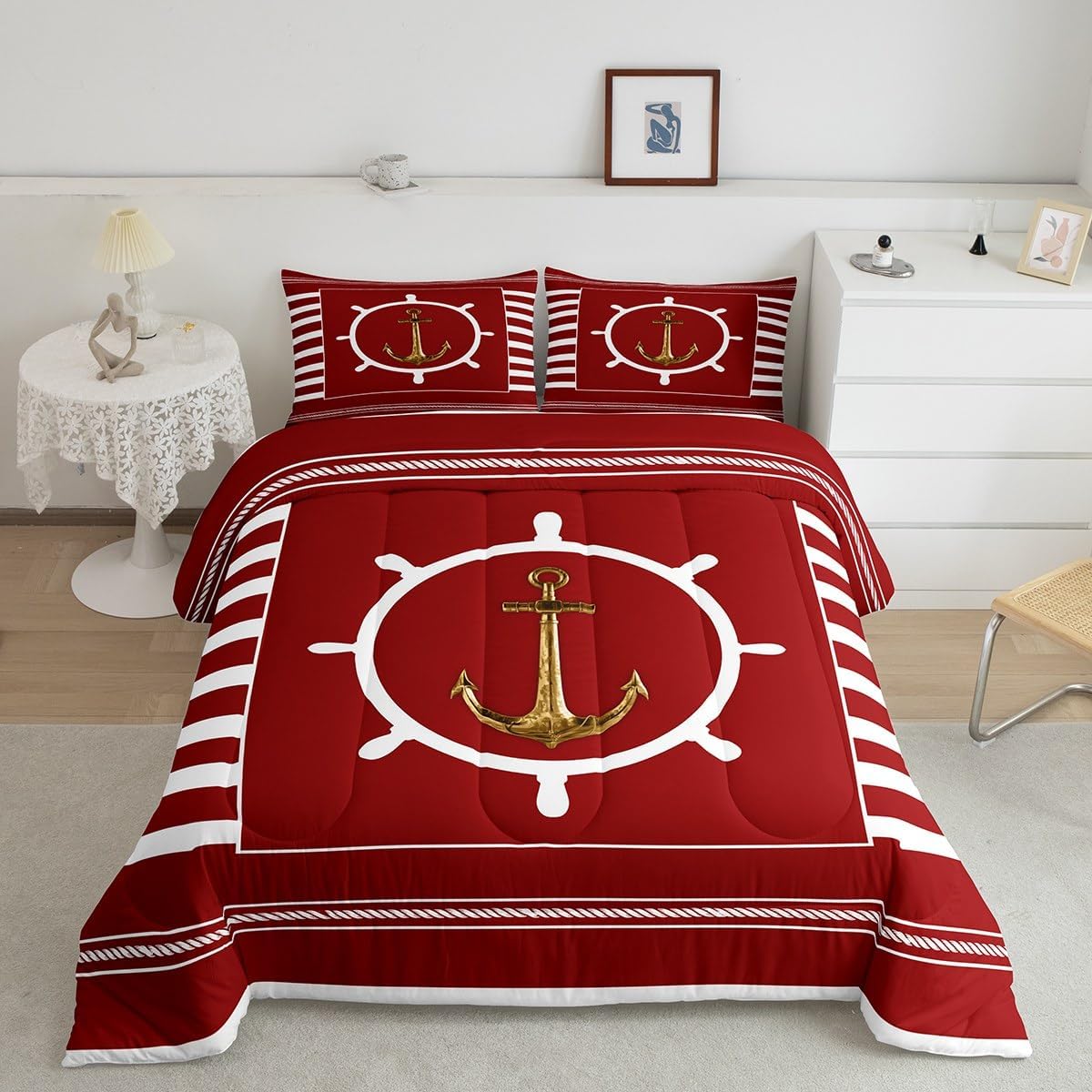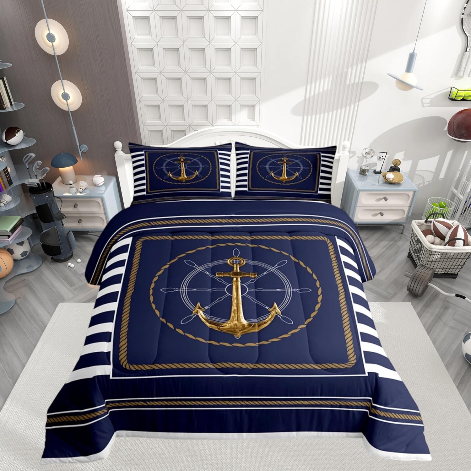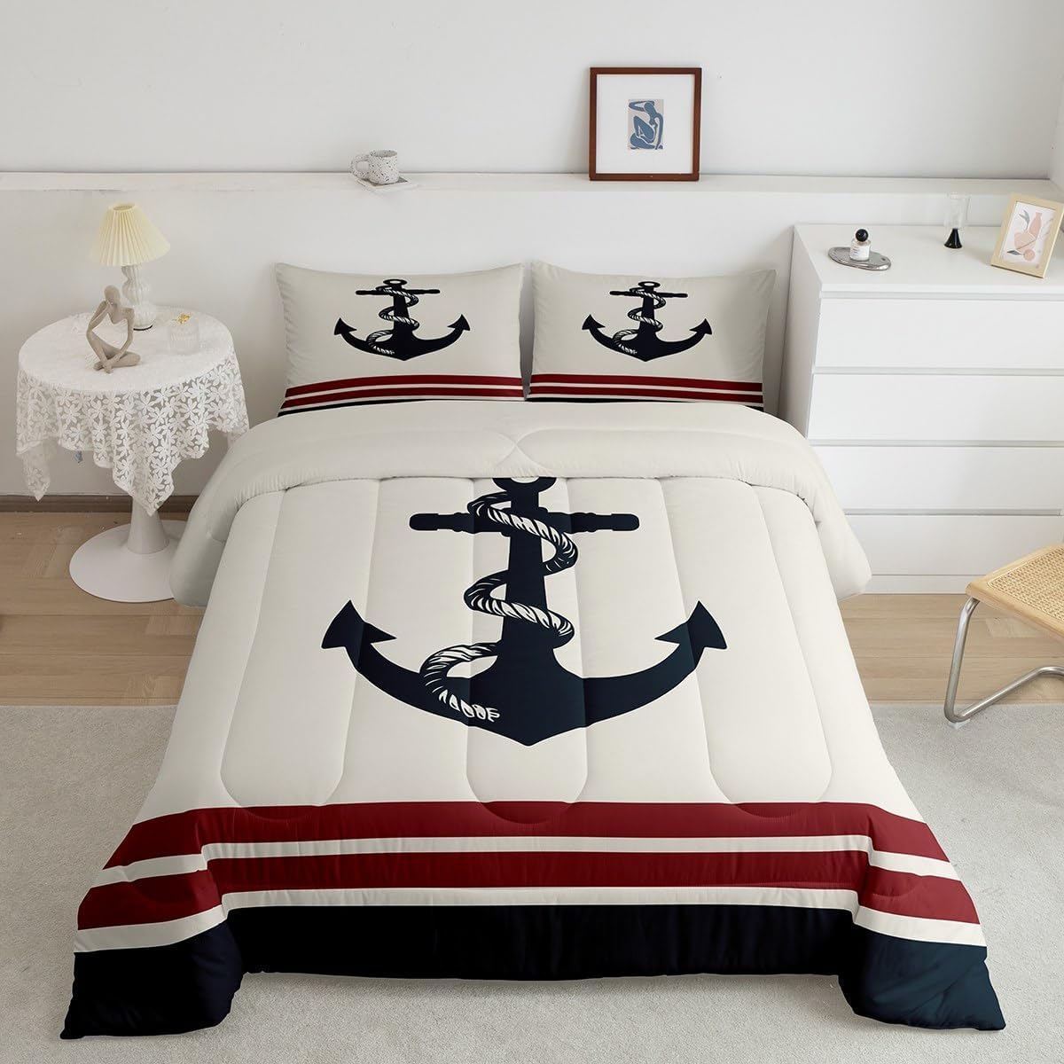 Feelyou Anchor Decor Comforter Set Full Size Nautical Themed Bedding Set for Boys Girls Teens Ocean Comforter Sea Adventure Duvet Set Brown Quilt Set