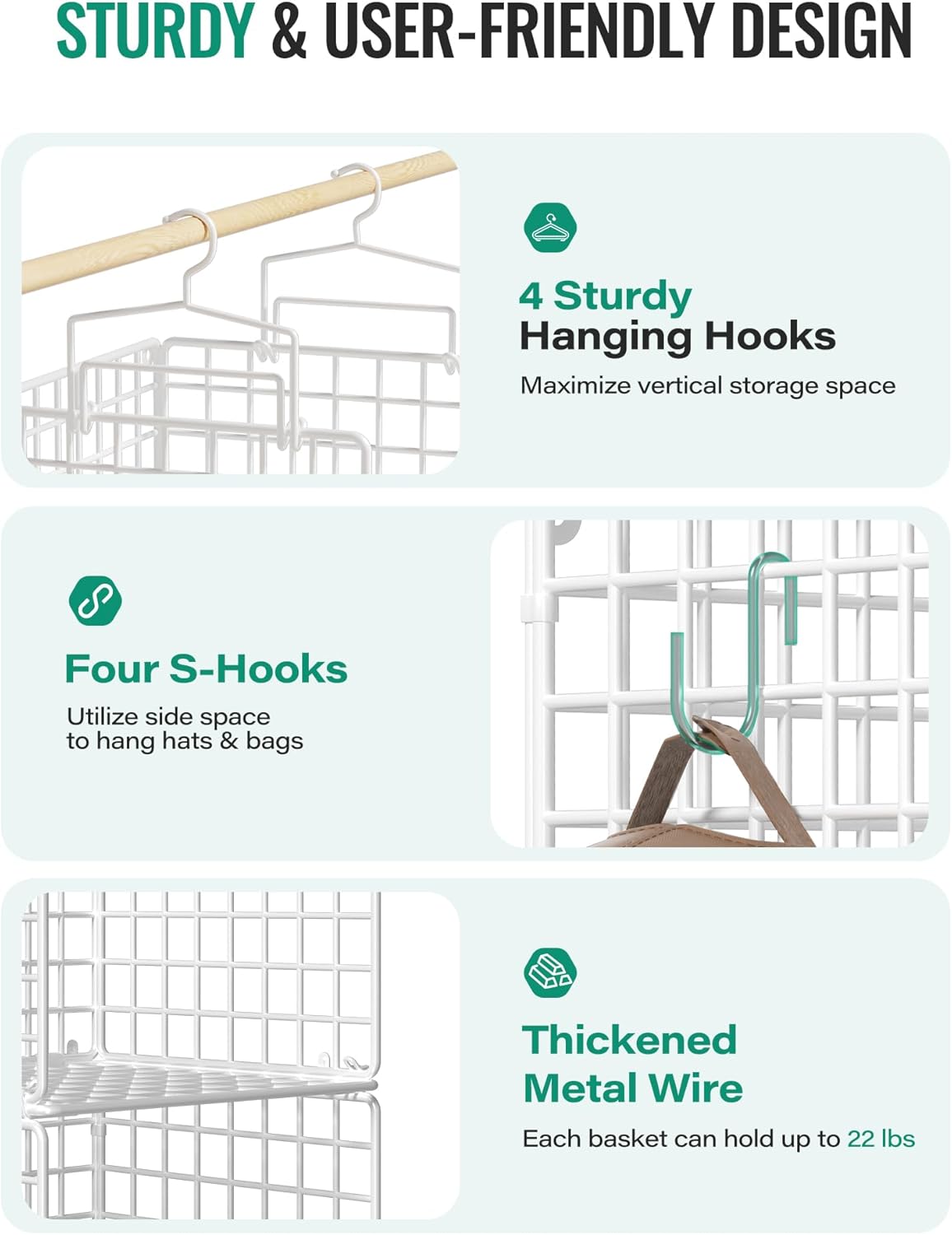 | Included Components | 4 Large Hanging Hooks, 4 Metal Wire Baskets, Installation Hardware, Instruction Manual |