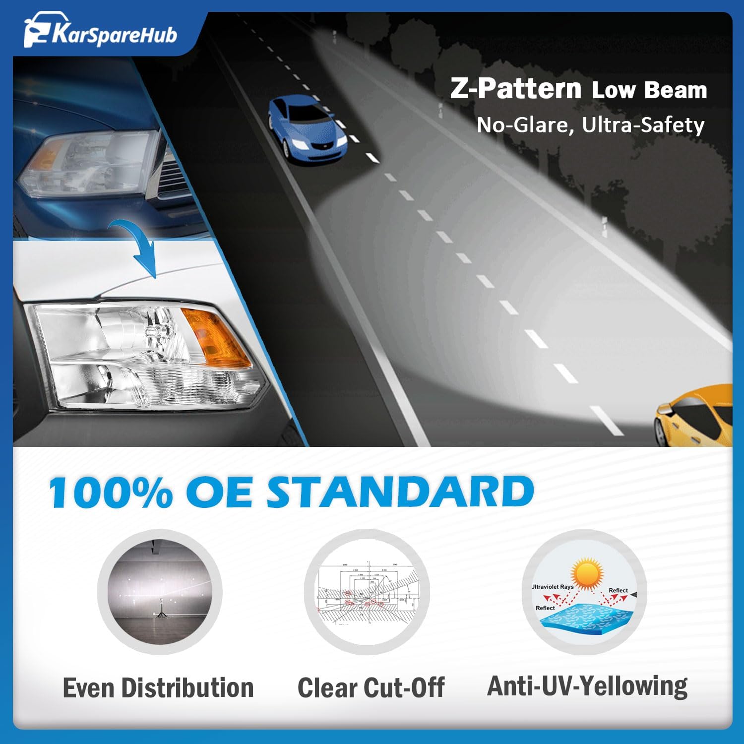 | Light Source | High Beam : HB3 / Low Beam : H11 (Bulbs included) |