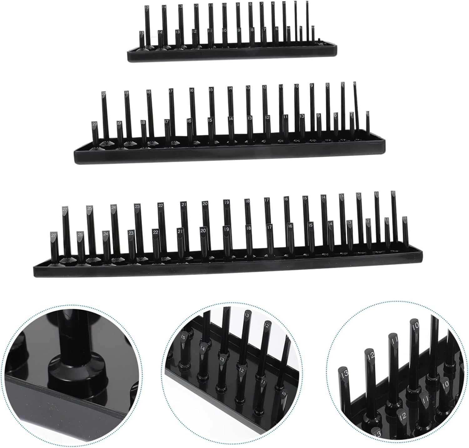 Package Include 1 x 1/2 holder 1 x 3/8 holder 1 x 1/4 holder Characteristics -Size: 45.50x10.00x9.00cm/17.91x3.94x3.54inch(1/2" tray) Drive Socket Holder -Material: Plastic Socket Keeper -Keep your socket wrenches organized and within easy access to this socket organizer tray. Heavy Duty Socket Organizer -Keep your workbench and garage under control, prevent your sockets from excessive tangling and fray Deep Sockets Tray. -Socket racks are the professional mechanics preffered style of socket organization Socket Management Holder. 33.50x7.50x7.50cm/13.19x2.95x2.95inch(3/8" tray) Socket Organizer Tray -These socket holders store a wide array of SAE and Metric mechanic sockets Car Socket Organizer. 22.50x5.50x6.00cm/8.86x2.17x2.36inch(1/4" tray) Socket Holder -This socket organizer tray has clearly labeled measurements for convenient size classification Shallow Sockets Tray.Goods DescriptionDeep Sockets Tray Whether you’re a professional craftsperson or you simply own many tools, you should definitely invest in this metric socket organizer! Made with , heavy duty materials, our socket holder organizer is incredibly durable, will never have to replace it with a new one!