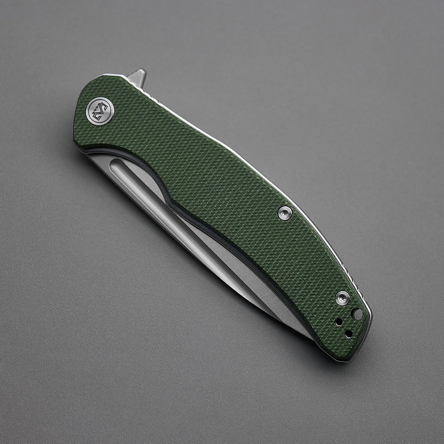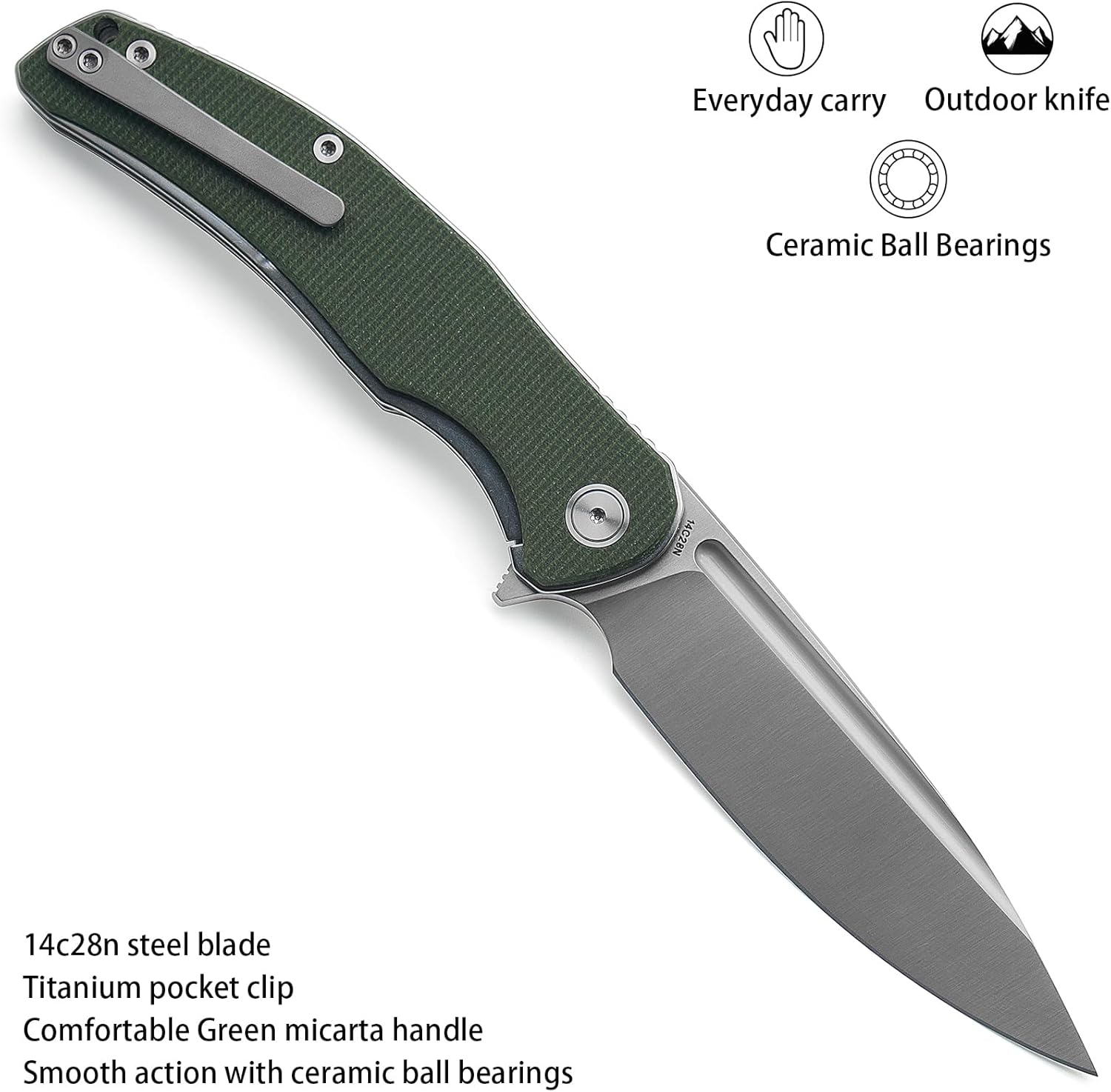 M Miguron Knives Velona Flipper Folding Knife 4.03 Inches Satin 14c28n Blade Green Micarta Handle With Titanium Pocket Clip Camping Hiking Pocket Knife
