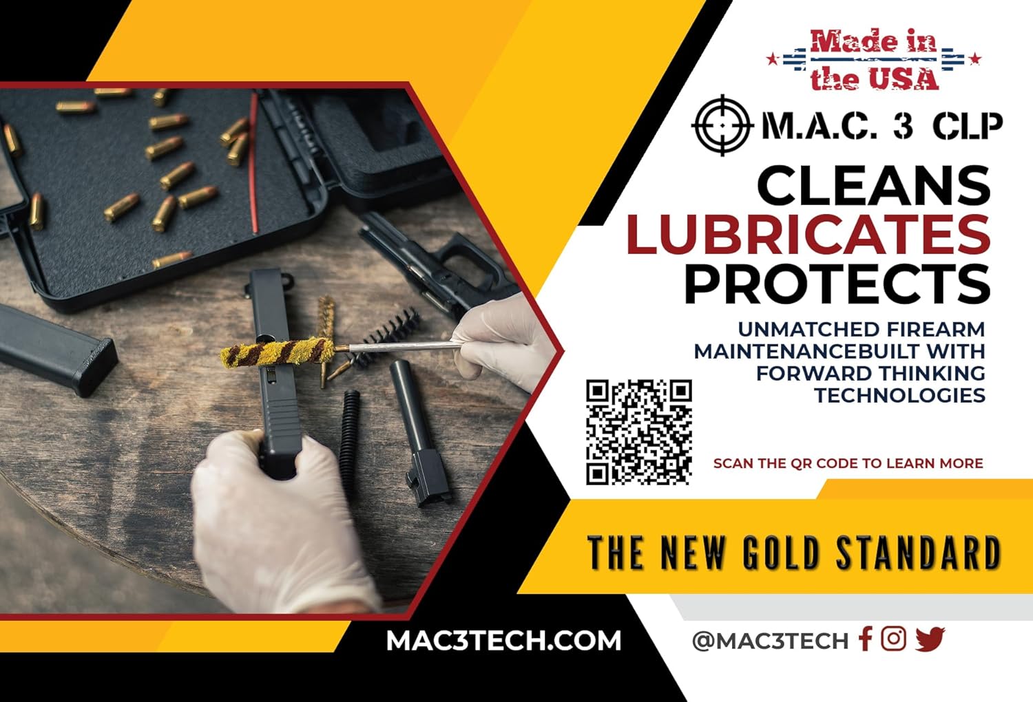 Elevate your firearm maintenance with MAC3 CLP, the ultimate 3-in-1 solution engineered for superior performance. Developed by professional chemists and field-tested by military and law enforcement experts, MAC3 CLP cleans, lubricates, and protects your firearms, ensuring they operate at peak efficiency under any conditions
