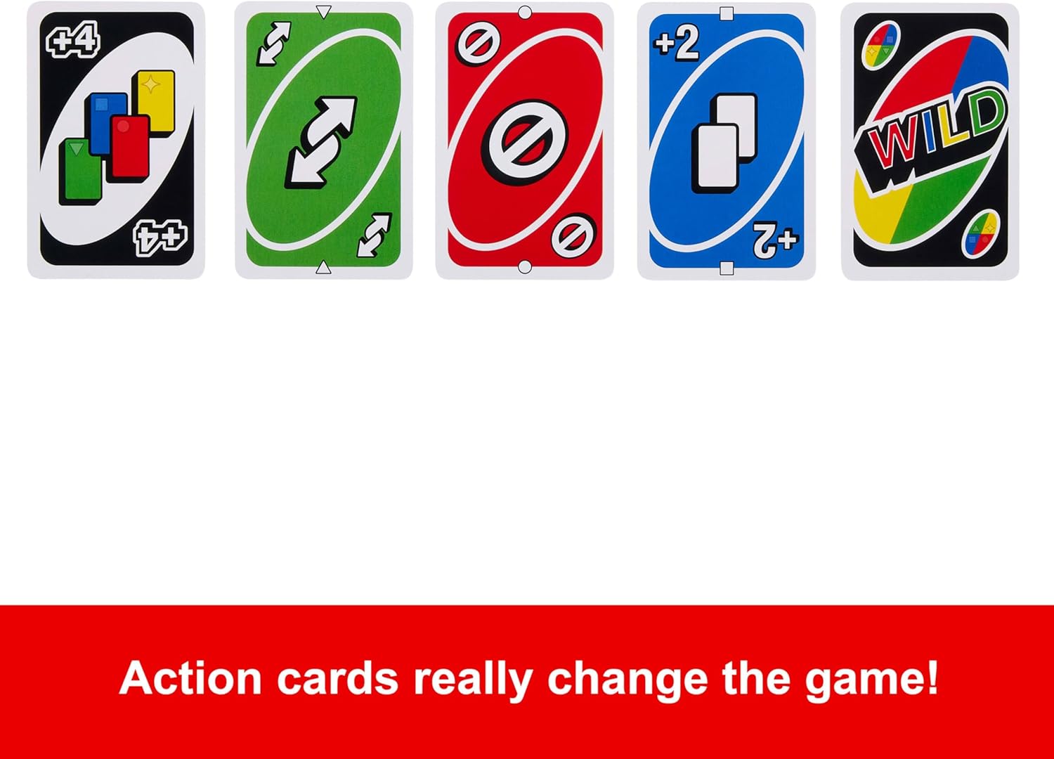 UNO is the classic card game that's easy to pick up and impossible to put down Players take turns matching a card in their hand with the current card shown on top of the discard pile, either by color or number. Special graphic symbols added to each card help identify the color(s) on that card, allowing players with any form of color blindness to play. Action cards, like Draw 2 and Draw 4, deliver game-changing moments, and three customizable Wild Cards let players add their own rules. But when down to one card, don't forget to yell, 'UNO' Designed for 2 to 10 players ages 7 years old and up. Colors and decorations may vary.