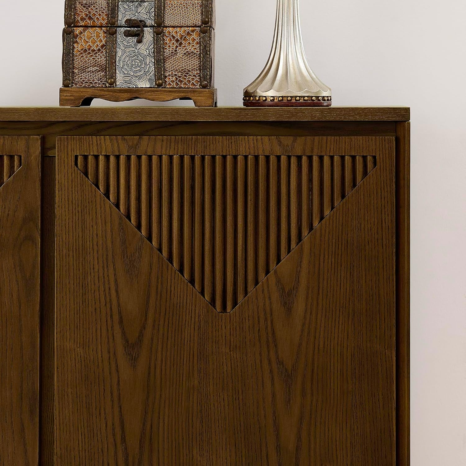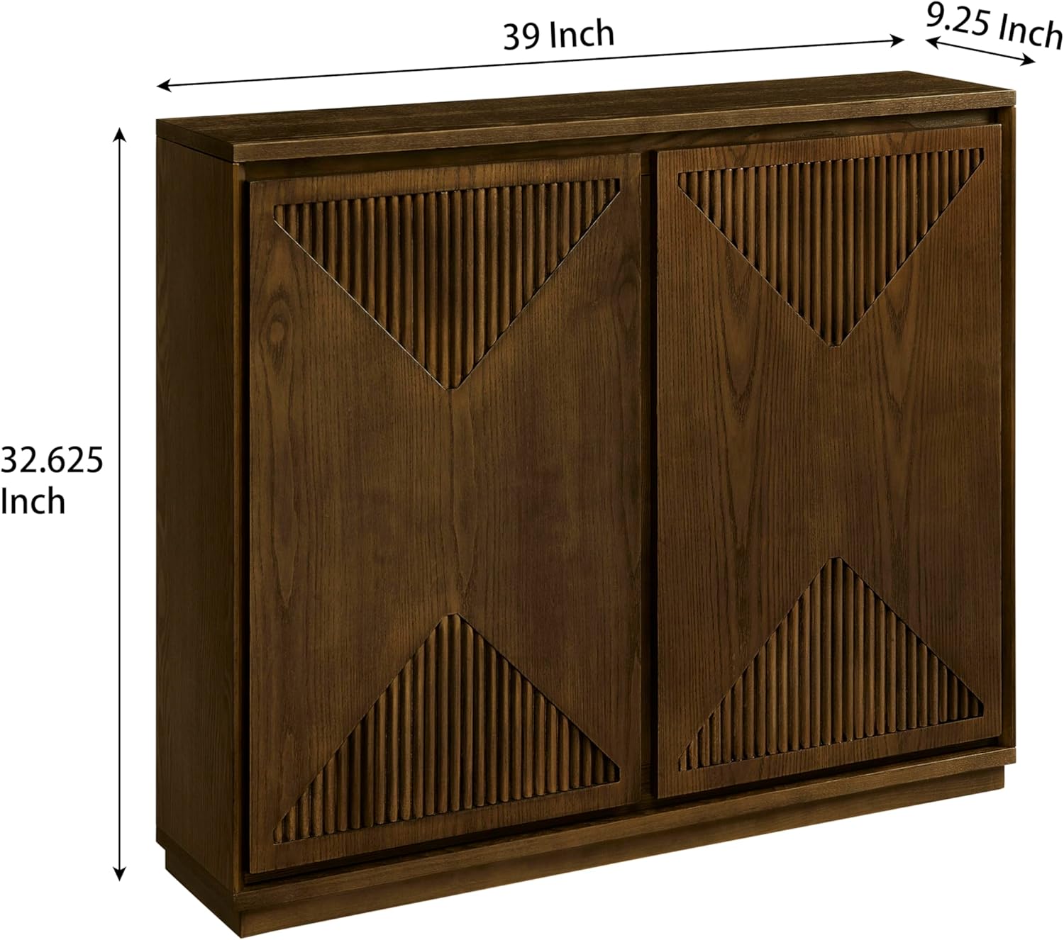 Product Type :Single Box ProductProduct Name:Mid Century Modern V-shape Storage Cabinet, Buffet Cabinet with Storage, Narrow Side Cabinet for Living Room Entryway Hallway Kitchen, Coffee Bar, BrownMain Color:BrownMain Material:Solid Wood+MDFProduct DimensionsAssembled Length (in.):39.00Assembled Width (in.):9.25Assembled Height (in.):32.48Product Weight (lbs.):53.31Package SizeLength (in.):43.00Width (in.):21.63Height (in.):7.00Weight (lbs.):64.00