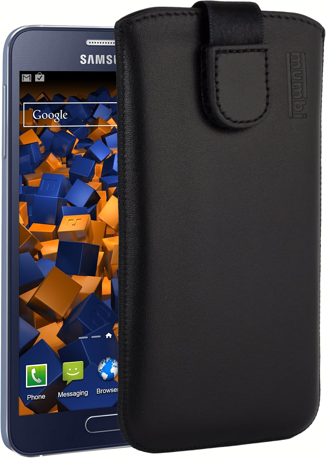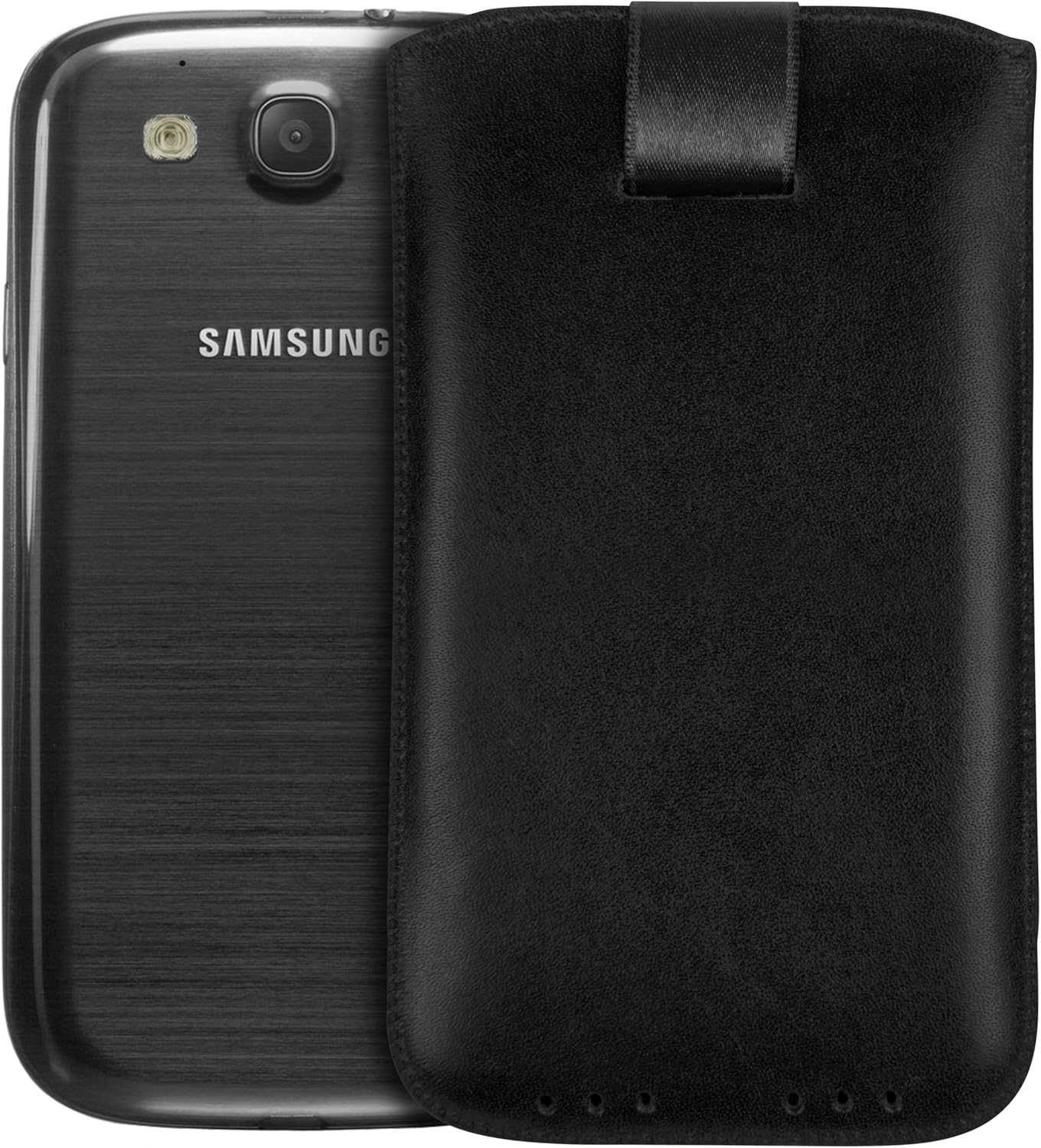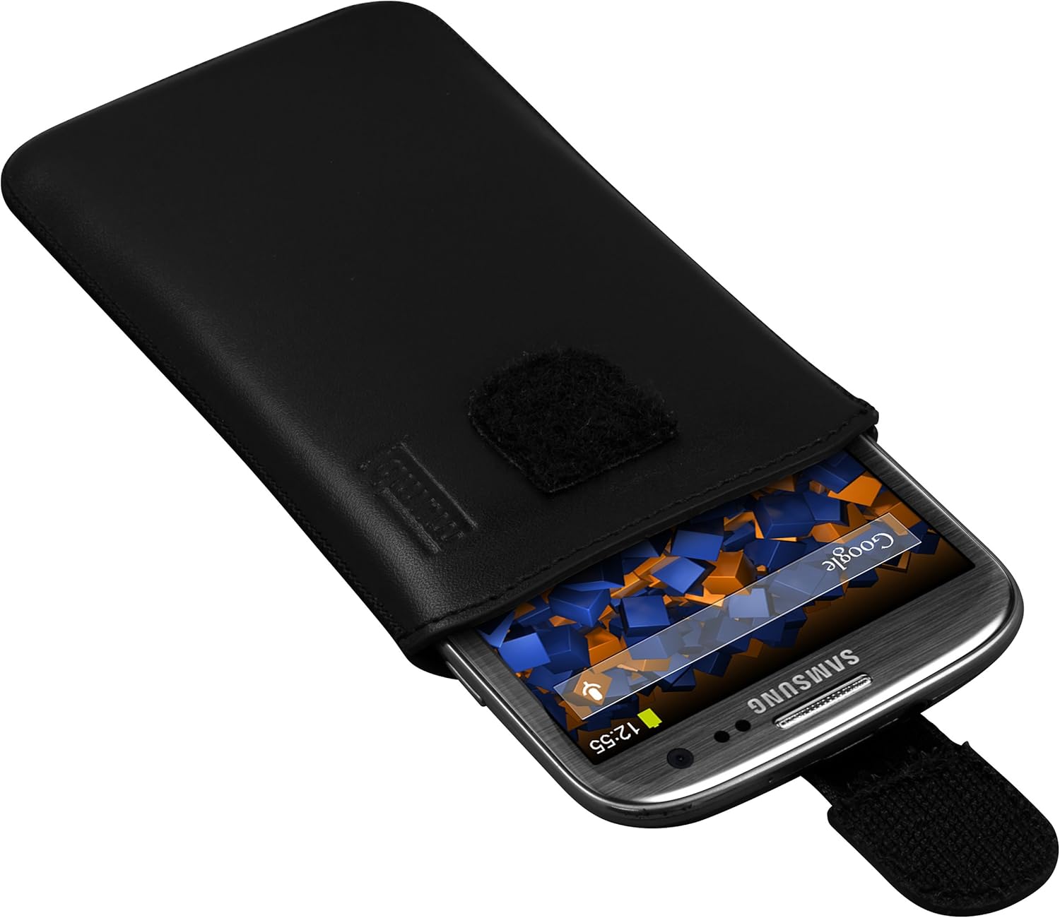 mumbi - Mobile Phone Case with Flap and Pull-Up Strap for Samsung Galaxy S3 i9300 - Leather - Black