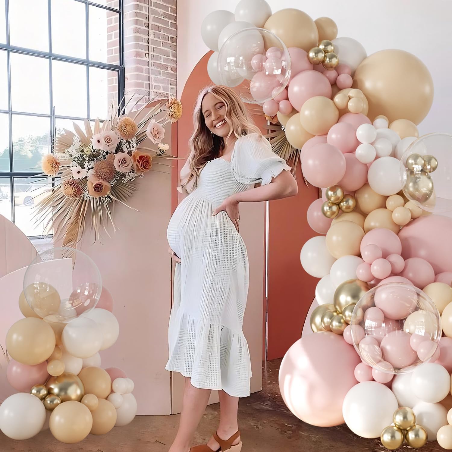 Pink White Nude Balloon Arch Kit 132Pcs Pink and Gold Balloon Arch Garland Kit Include Pink Nude White Gold Clear Balloons for Boho Engagement Wedding Bridal Shower Birthday Baby Shower Decorations