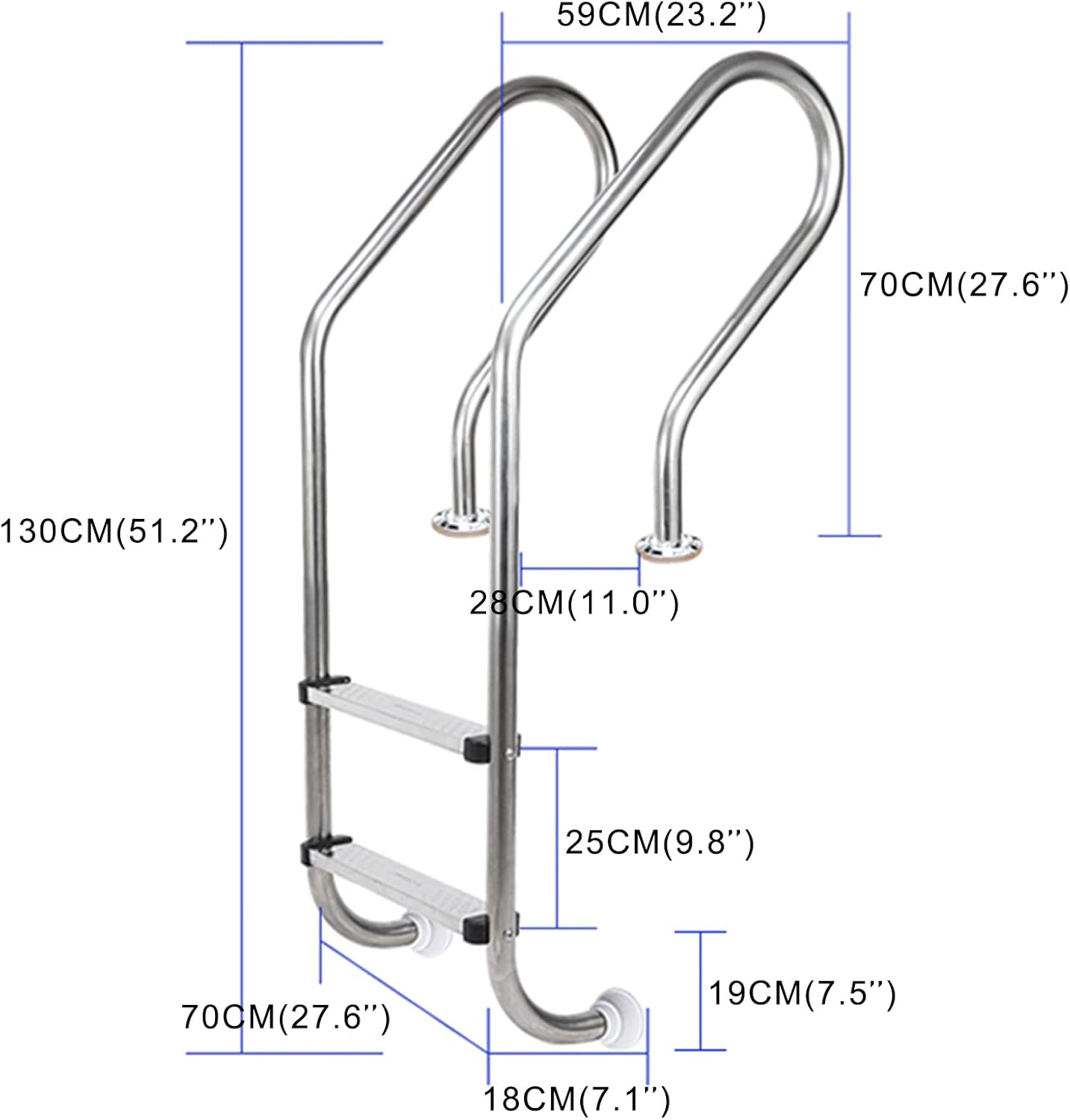 Welcome to shopping in our store!This 304 stainless steel handrail is perfect for any size pool. Have a wonderful cool summer! ➤ This armrest adopts an ergonomic design, which is more suitable for people to enter and exit the swimming pool. It can carry a weight of up to 440 pounds. Ensuring a safe, sturdy support for entering and exiting the water. ➤ Product Specifications - Material: 304 stainless steel - Product size: 130x59cm - Color: Sliver - Load capacity: 440 lbs (Maximum) - Tube thickness: 1.0 mm ➤ Package Includes - 1 x Stainless Steel Pool Handrail - 1 set of accessories ➤ Product Advantages - Premium 304 stainless-steel material is antirust and durable - Humanized curved structure ensures easy grasp - Polished surface with great gloss can remain for a long time - Slightly sloped design for getting in and out of the pool easily - Quickly mounts ➤ Attention: - Please allow 1-3cm measuring deviation due to manual measurement. - If you have any questions about our products, please send us an email, we will reply you within 24 hours due to the time difference. We will provide you with the best service. - Hope you can have a pleasant shopping experience!