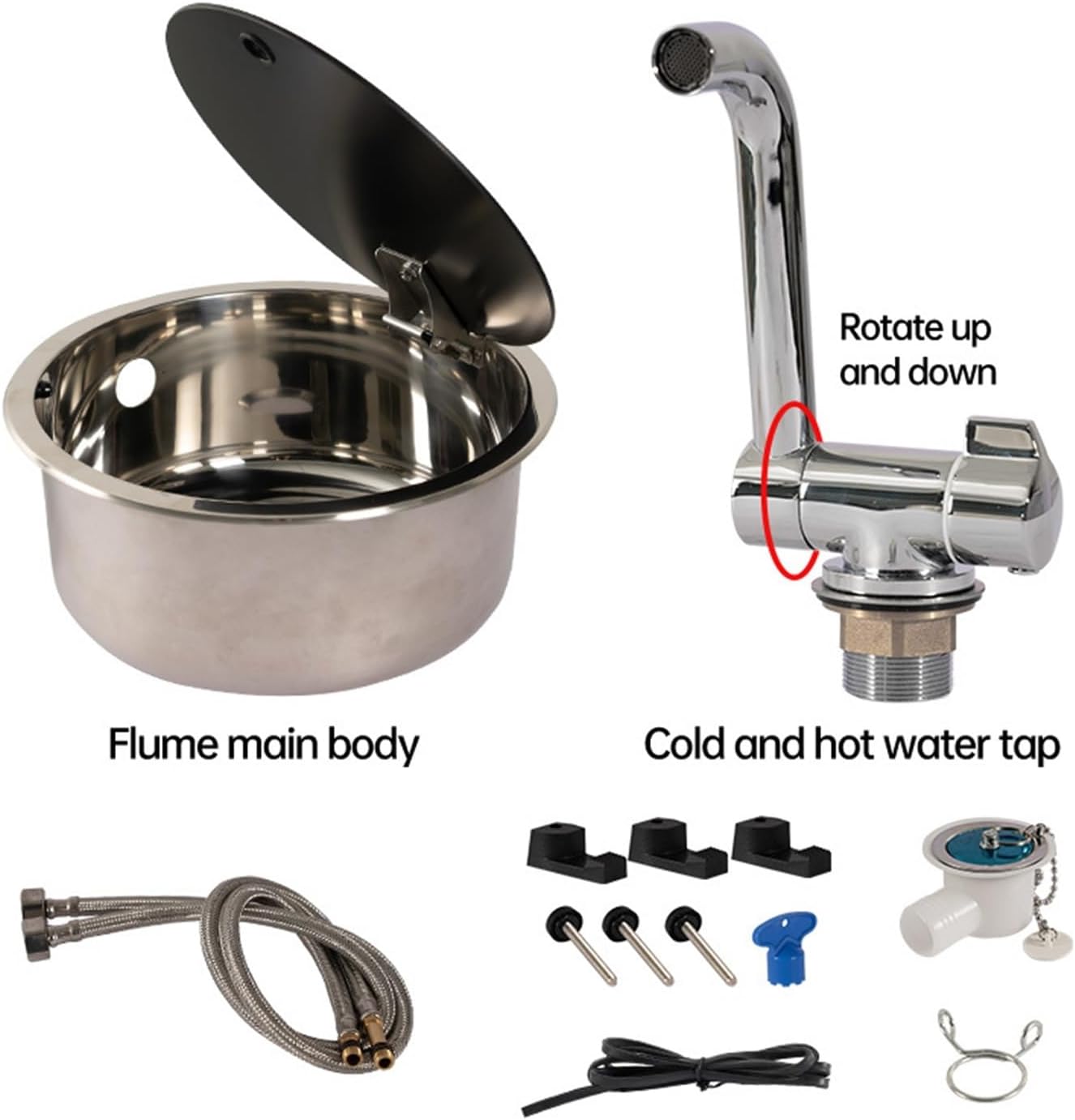 Round Camping Sink RV Kitchen Accessories Steel Faucet Swivel RV Kitchen Sink
