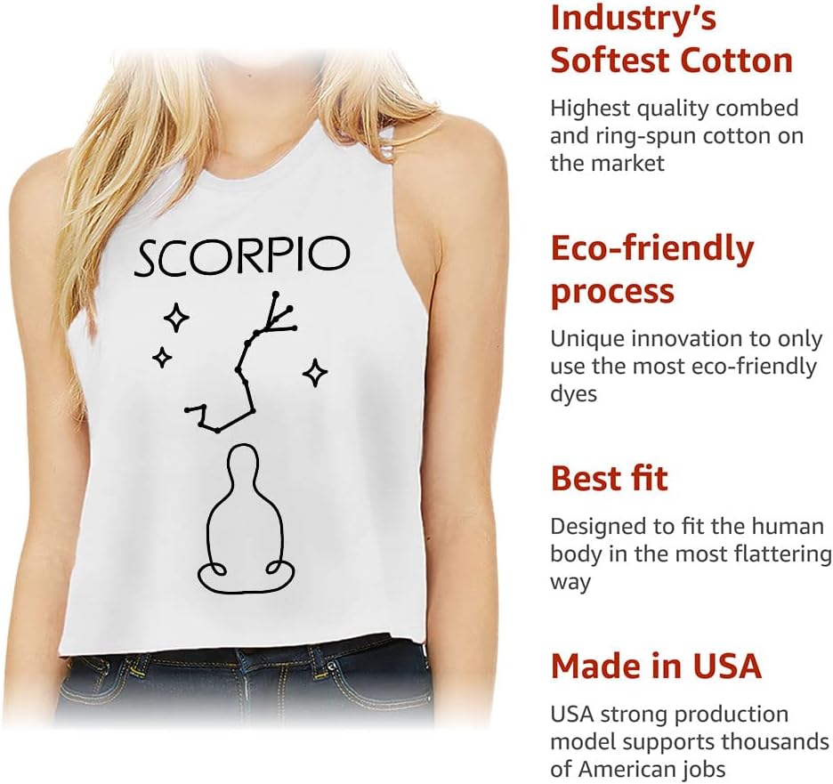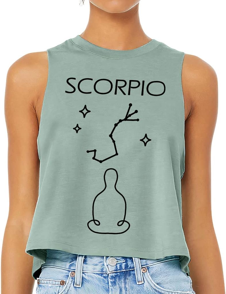 Cute and flattering Scorpio Design Racerback Cropped Tank is suitable for most indoor or outdoor activities, such as gym, yoga, running, hiking, beach or relaxing around the house. Pair Cool Women's Tank with your favorite sports bras, especially strappy ones, and high-waisted leggings, then you will enjoy cool and comfortable exercise throughout the summer.