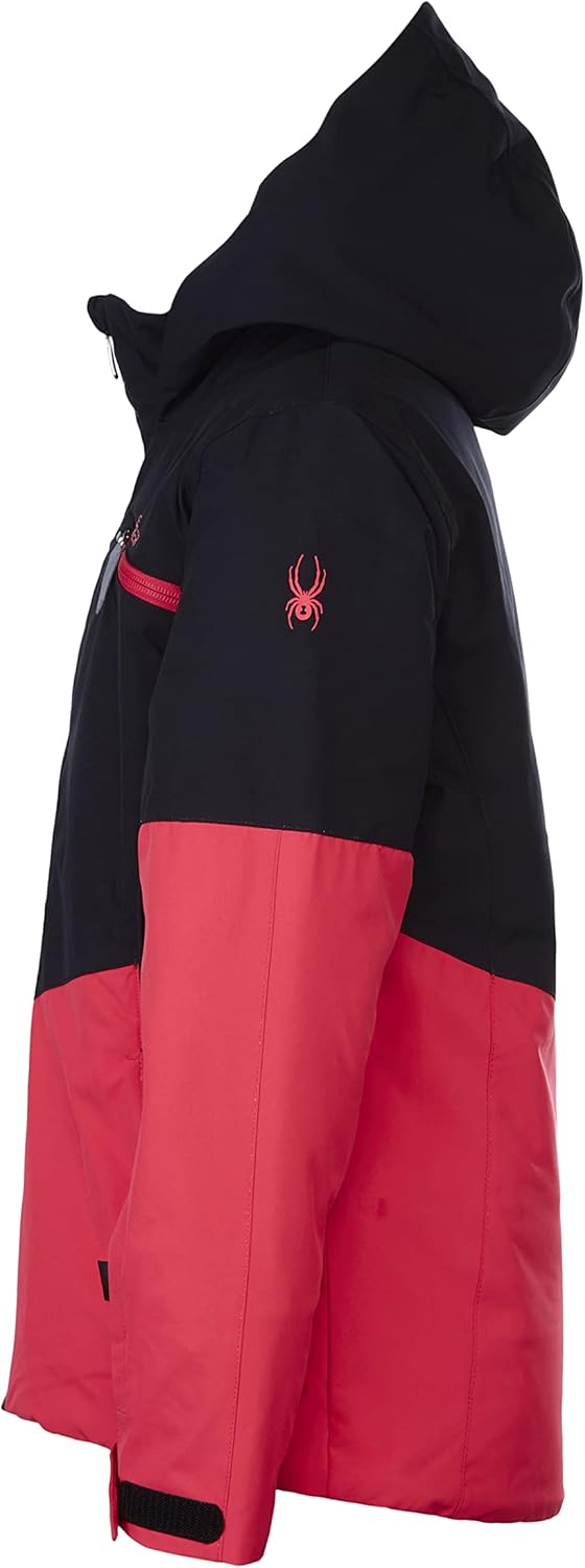 Combining Black ECO insulation with recycled Repreve polyester outer, the Conquer is optimized to keep girls warm and dry when mountain weather moves in and temperatures drop. A 10k/10k laminate with additional DWR creates weatherproof protection. A removable hood with an inner hood gaiter and Arrow Vislon zippers are the SPYDER extras that will pop on the podium.