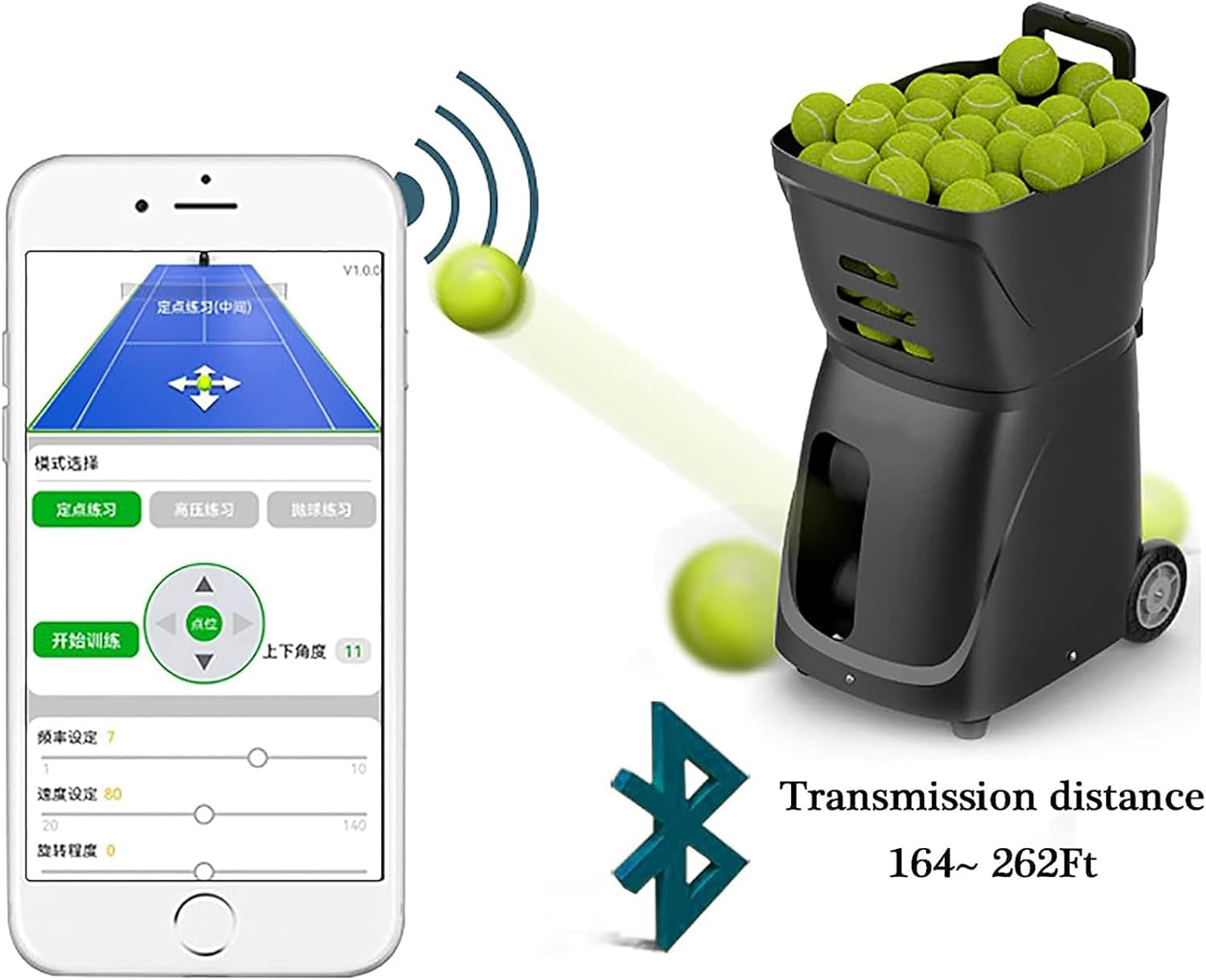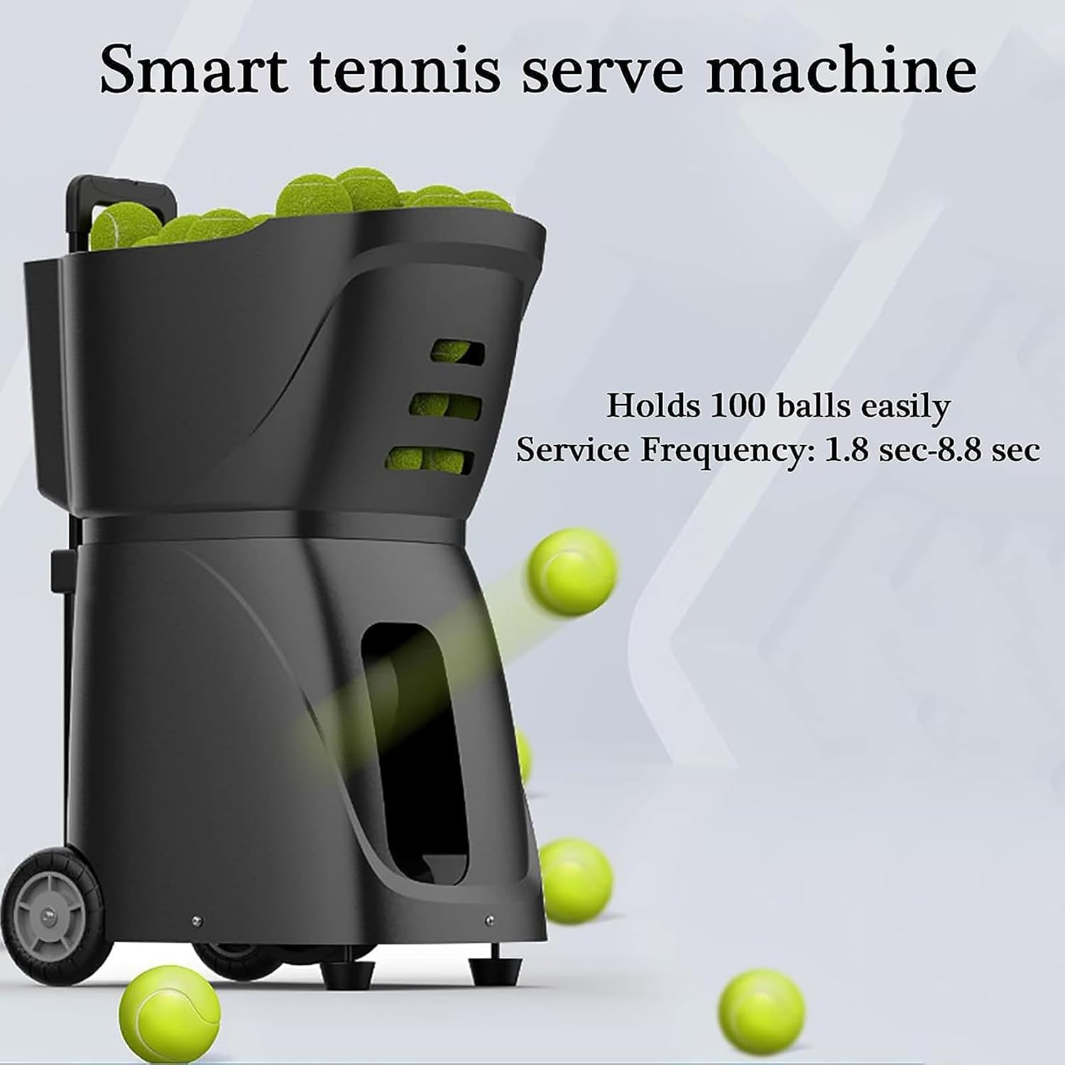 【Specification】 AC power supply: 110V/220V DC power supply: 24V Power: 60W Ball capacity: 100 (not included) Service frequency: 1.8 seconds -8.8 seconds Product color: black Net weight: 13.5kg Product size: 43.5x32x66cm Scope of application: suitable for personal courts, families, tennis clubs, students, tennis coaches, etc. Package Included: 1 x Tennis Ball Machine Note: This product does not come with a ball notes: 1. Due to different shooting tools, there may be slight color difference, which is not a quality problem, please refer to the actual product. 2. Due to manual measurement, the error is 1-3 cm, please refer to the actual product, thank you for your understanding.