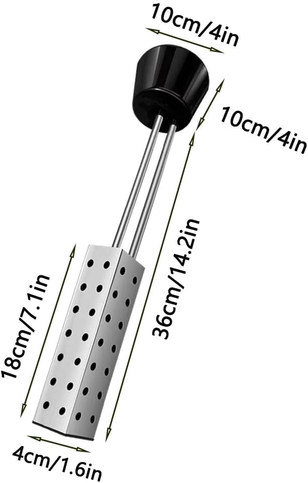 Features:【Quick Heating】This immersion water heater heats water quickly, even in the cold winter, you can enjoy the comfortable bathing effect quickly. So if there is a need for hot water in your daily life, this immersion water heater is your optimum choice.【Good Heat Insulation】 The heating rod comes with a heat shield on the periphery to prevent scalding, so the heating element inside will not come into direct contact with people or animals, and the holes on the heat shield can better distribute the heat to the water.【Multiple Functions】Choose between a general model or thermostatic model electric immersion water heater. The general model is easy to use, just plug in and power up. The thermostatic model features temperature control and reservation capabilities. It sounds an alarm and cuts off power when the set temperature is reached and reheats when the water temperature drops below 5°C/41°F.【Easy to Use】Fill the container directly with water, then fully immerse the heating rod into the container, connect the heating rod to a properly grounded power source and wait for that to heat up. Try to avoid putting the water directly into the container after the hot water has been heated for a while to avoid scalding.【Easy to Carry】The size of the water heater is about 70*70*440cm/2.3*2.3*14.4ft. The water heater is small and lightweight, making that easy to carry. When you go out camping, you can also carry this water heater with you and easily enjoy the pleasure of showering outdoors.Specifications: Material: Stainless SteelRated Voltage: 110VRated Frequency: 60HZRated Power: 1500WSize: 70*70*440cm/2.3*2.3*14.4ftItem Weight: 530g/1.2lbColor: BlackStyle: General ModelPackage Included:1 PC * Immersion Water Heater