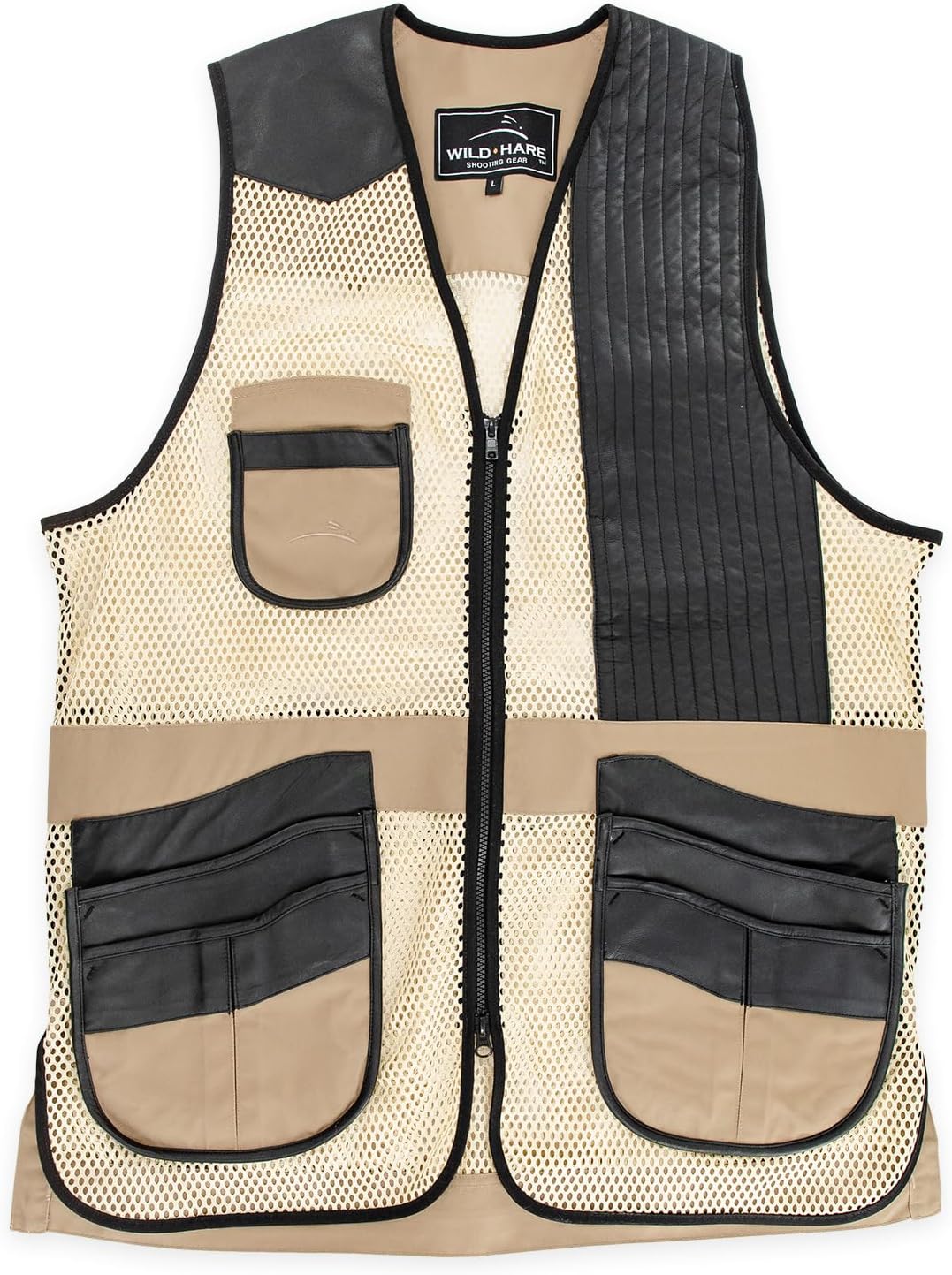 Based on our most popular vest the Wild Hare Heatwave mesh vest, we added genuine leather to the shooting pad and trim providing extra durability, comfort and breathability. While the mesh body allows for excellent air flow and reduced weight during hot days at the range. Additional features include: 1. Large gusseted double pockets easily hold a box of shells 2. Internal shoulder pocket accept ShockEater recoil pad (sold separately) 3. Rear velcro straps give a perfect tailored appearance everytime 4. Rear hull pouch with 2-way YKK zipper for easy cleanout 5. Internal zippered accessories pocket (on off side) 6. Large 2-way YKK main zipper 7. Fabric loops on the back to attach your competition bib number without damaging your vest 8. Plenty of room on back shoulders and above breast pocket for personalization 9. Lifetime Guarantee against premature failure of materials, hardware and construction True AMERICAN Men's Sizing. Chest measurements at the armpit (inches): Small - 34-36" Medium - 38-40" Large - 42-44" XLarge - 46-48" 2XL - 50-52" 3XL - 54-56" 4XL - 58-60" 5XL - 62-64"